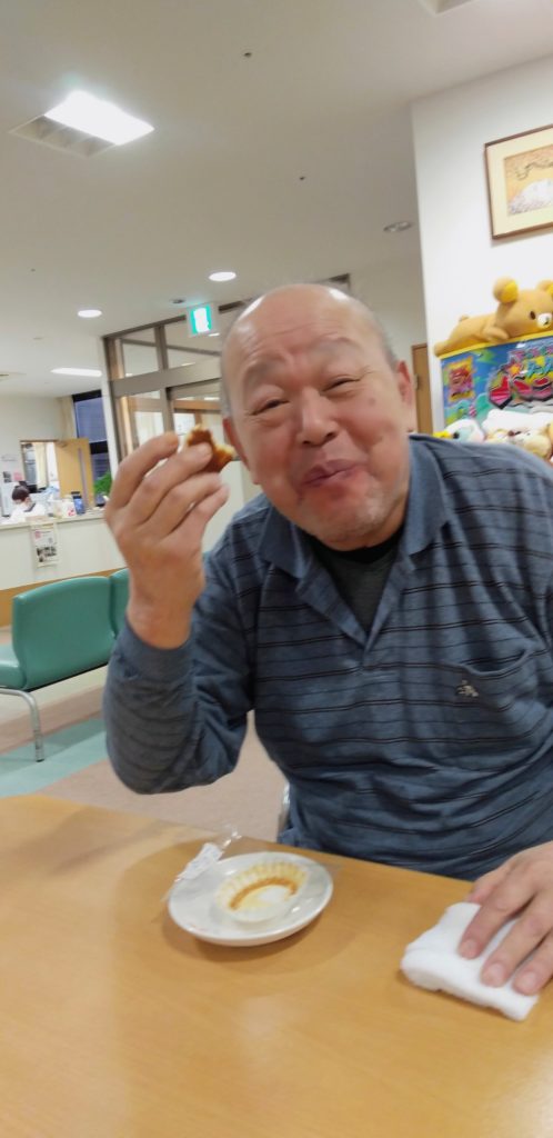 すでに3回提供していただきました。1回目が「レーズン・マドレーヌ」。2回目が「はちみつレモンケーキ」。3回目が「チョコ・ブラゥニー」。高齢者の皆さんにも食べ易く工夫を頂いていて、なにより本当に美味しいんです。デイに通っていただいている皆さんの中には、評判を聞きつけて日曜日に通うのを変える人、甘美屋さんのお菓子が食べられるなら通いたいと、新規で申し込みされる人も続出。美味しいも楽しい。日曜日のデイサービスをお探しの方、お待ちしています。