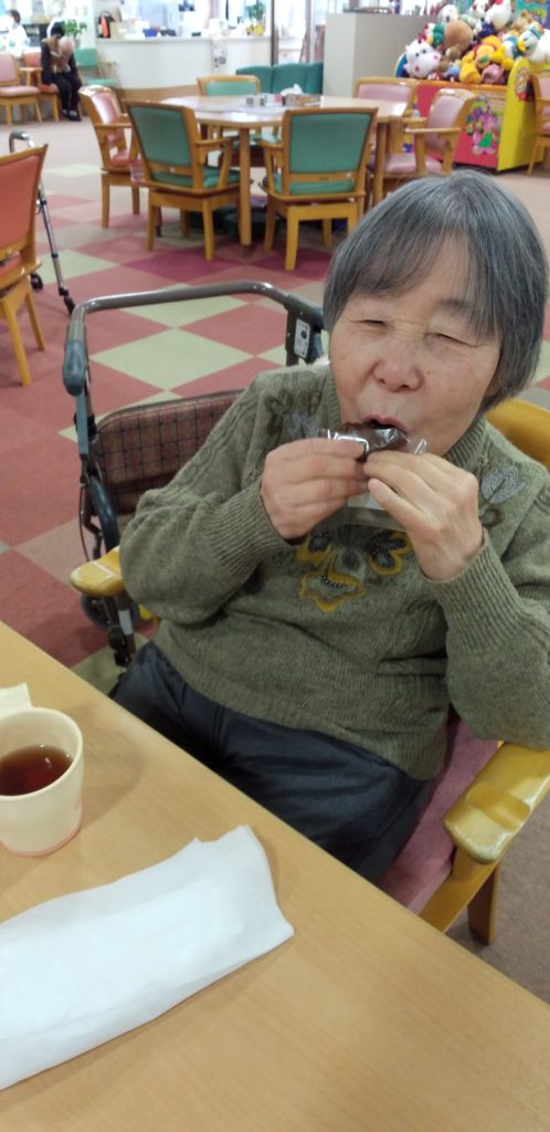 1月14日日曜日から毎週日曜日限定で始まりましたお菓子の「甘美屋」さんが提供するおやつタイム(デイサービス限定です)。創業50年、地域のお菓子屋さんとのコラボ企画ですが、利用者さんに大好評です。